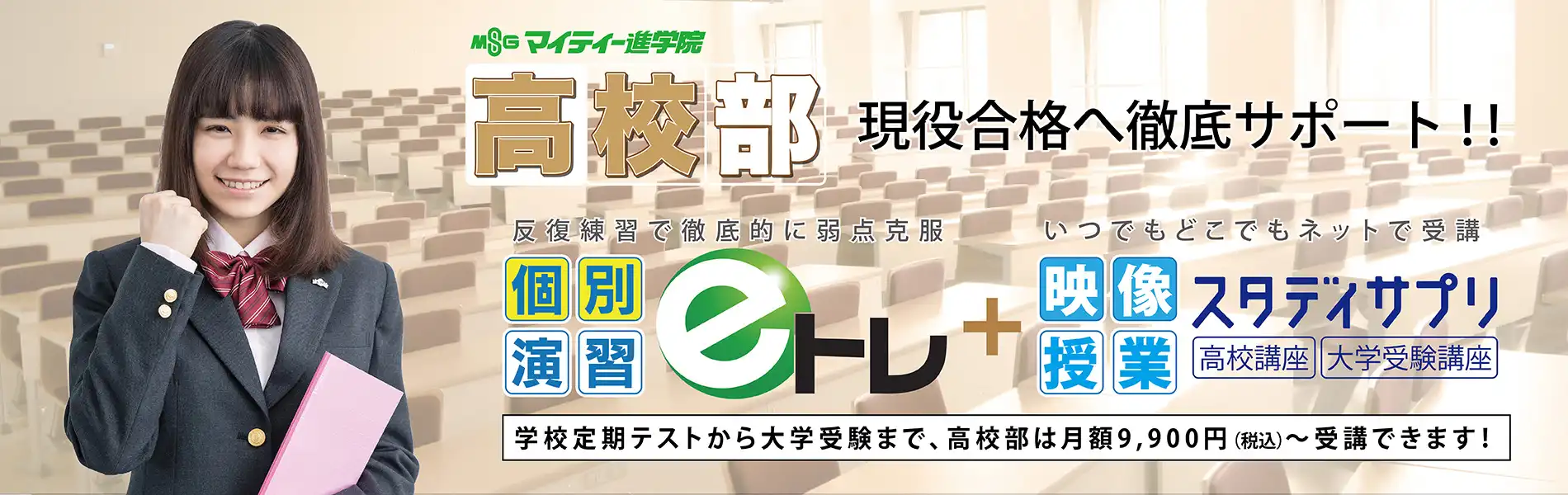 小・中学生 無料体験申込 各教科2回ずつ無料で体験授業ができます。フォームに必要事項を入力するだけです。24時間受付中! 詳細はこちら 【中3受験講座】土曜特訓 中3受験講座「土曜特訓」は毎週土曜日に青葉校で開講中です。受験生が志望校目指して勉強中です! 詳細はこちら Mポイントシステムについて 塾生の使用するMポイントカードについての説明です。登下校目メール配信などMポイントに関することはこちらへ。 詳細はこちら