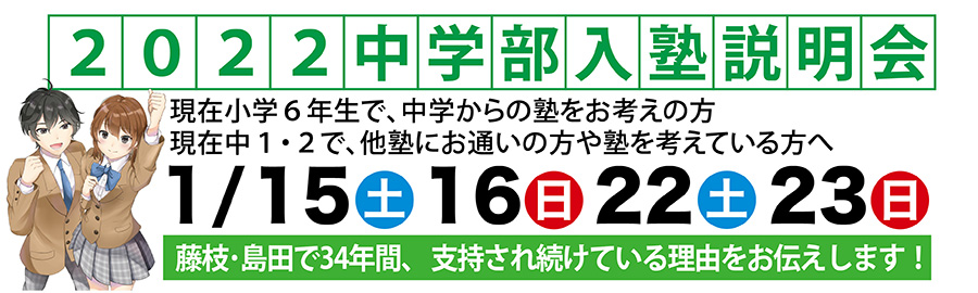 塾説明会開催 ~新中1.2.3年生の皆さまと保護者の方へ~