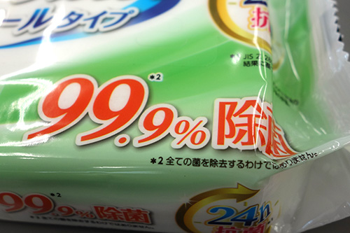 いつも使用している『除菌シート』には、「99.9%除菌」と書かれていました。