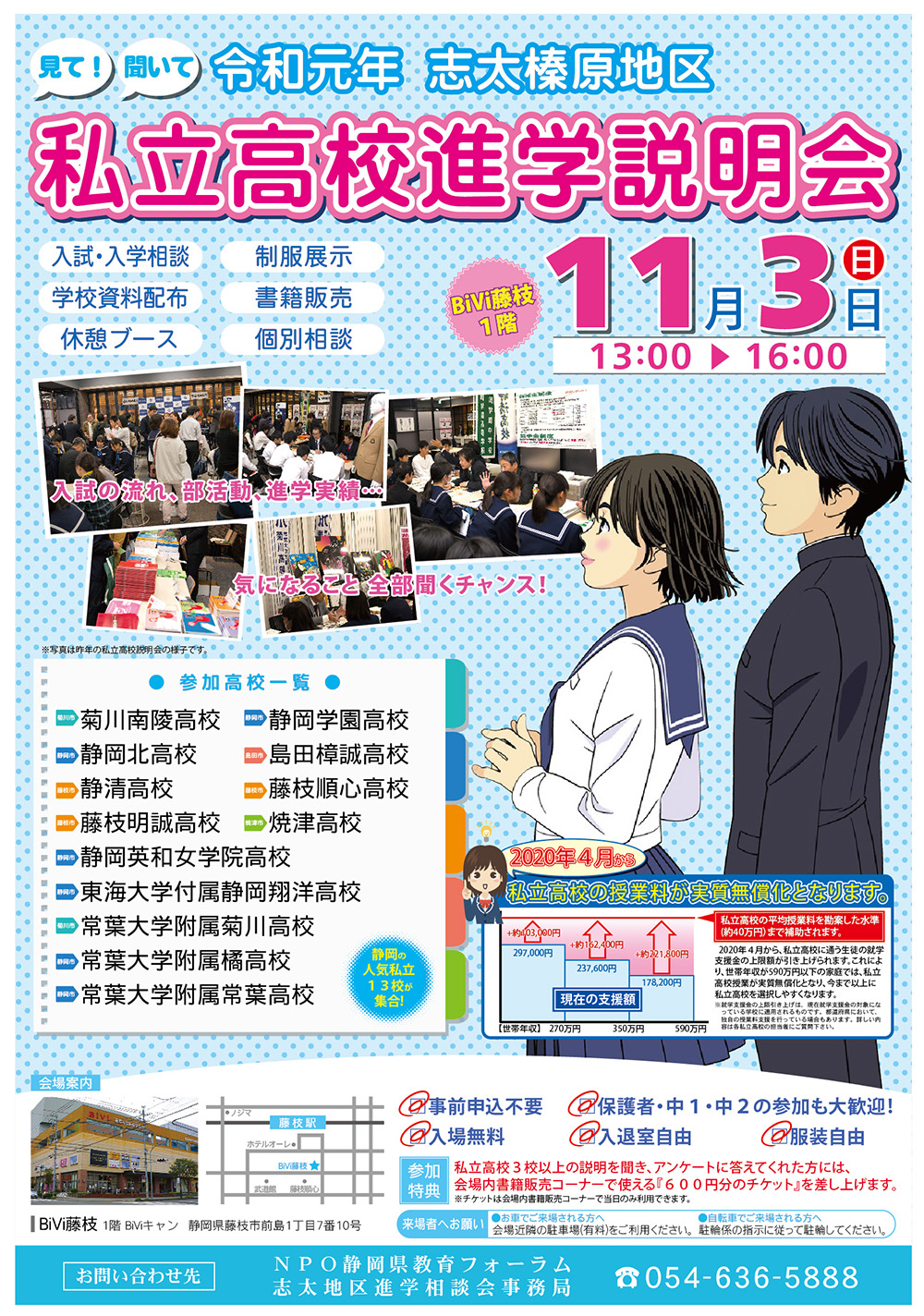 2019年11月3日(日)に「志太榛原地区 私立高校説明会」が実施されます。
