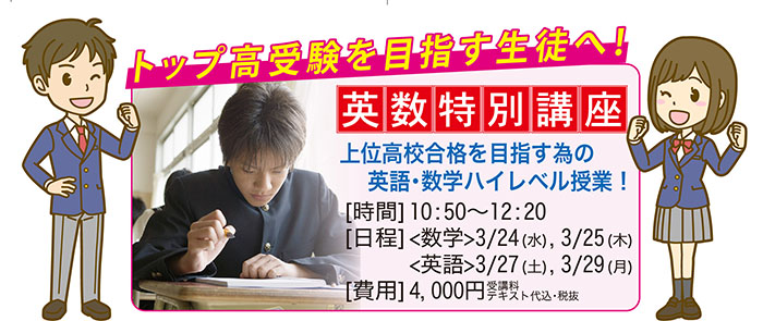 ☆3月25日・26日・27日・29日・30日は講習欠席分の個別補習も実施!(16:40~18:10)