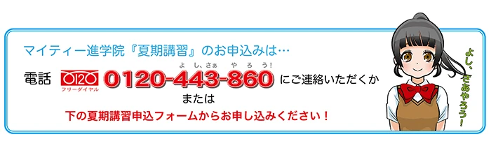 2024年のマイティー進学院夏期講習の申し込みが始まりました!この夏、夏期講習をどうしようかと悩んでいる方は、ぜひマイティーの夏期講習にお申込みください。いろいろな都合で1学期は満足な勉強ができなかった…というお子様がいましたら、夏休みは1学期の遅れを取り戻すチャンスです。勉強をがんばりたいと考える学生のために、大変お得な夏期講習をご用意させていただきました。なんと!6月中にお申込みいただくと、特典として7月の授業料が無料となる講習もありますので、マイティーの夏期講習をお得にはじめたい!という方は、お早めにお申し込みください!!!