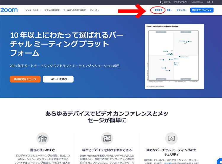 お使いのパソコンのブラウザの検索サイトから「Zoom」と検索するか、「 https://zoom.us/jp-jp/meetings.html 」こちらを開いてください。