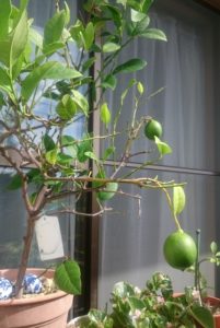 4階にある我が家のベランダには鉢植えのレモンの木があります。小さいながらも、今年は3個の実をつけました。まだ青いその実は、毎日少しずつ太って細い枝をしならせています。